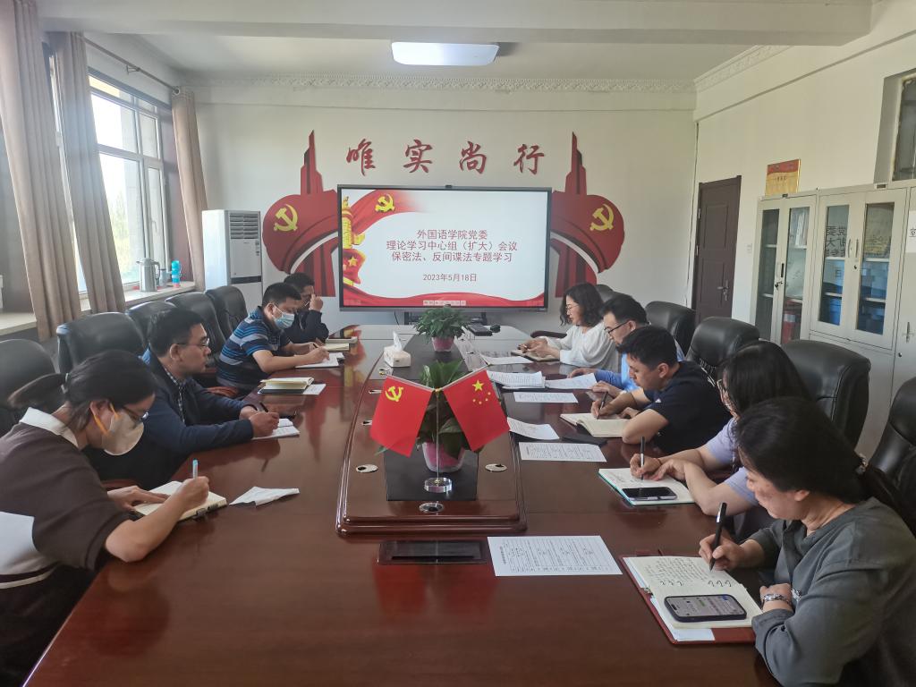 2023年5月18日下午,yL23411永利集团党委理论学习中心组(扩大)召开专题学习会,院党委书记冯小虎主持会议,学院领导班子成员、各系部、科室负责人等10人参会。