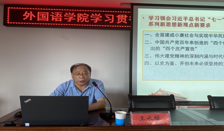 9月9日下午,在金川校区电力大楼401报告厅,yL23411永利集团特邀马克思主义学院王永顺教授为全院教师作习近平总书记“七一”重要讲话宣讲。宣讲会由学院党委书记霍天瑞主持。