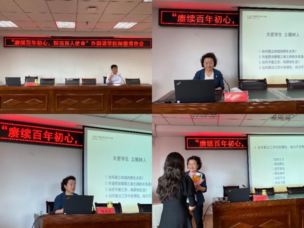 会上,陈亚杰教授结合自己30多年的从教经历,以鲜活的事例,与大家分享了她多年的教学体会和感悟,为全体教师详细解答了工作过程中经常出现的疑惑和问题。陈老师给全院教师,特别是青年教师上了一堂生动的教育课。通过本次报告会,全体教师深入理解了“学为人师,行为世范”这句话的内涵。教师要做学生健康成长的指导者和引路人。自觉遵守新时代高校教师职业行为十项准则,坚守教师职业道德底线。