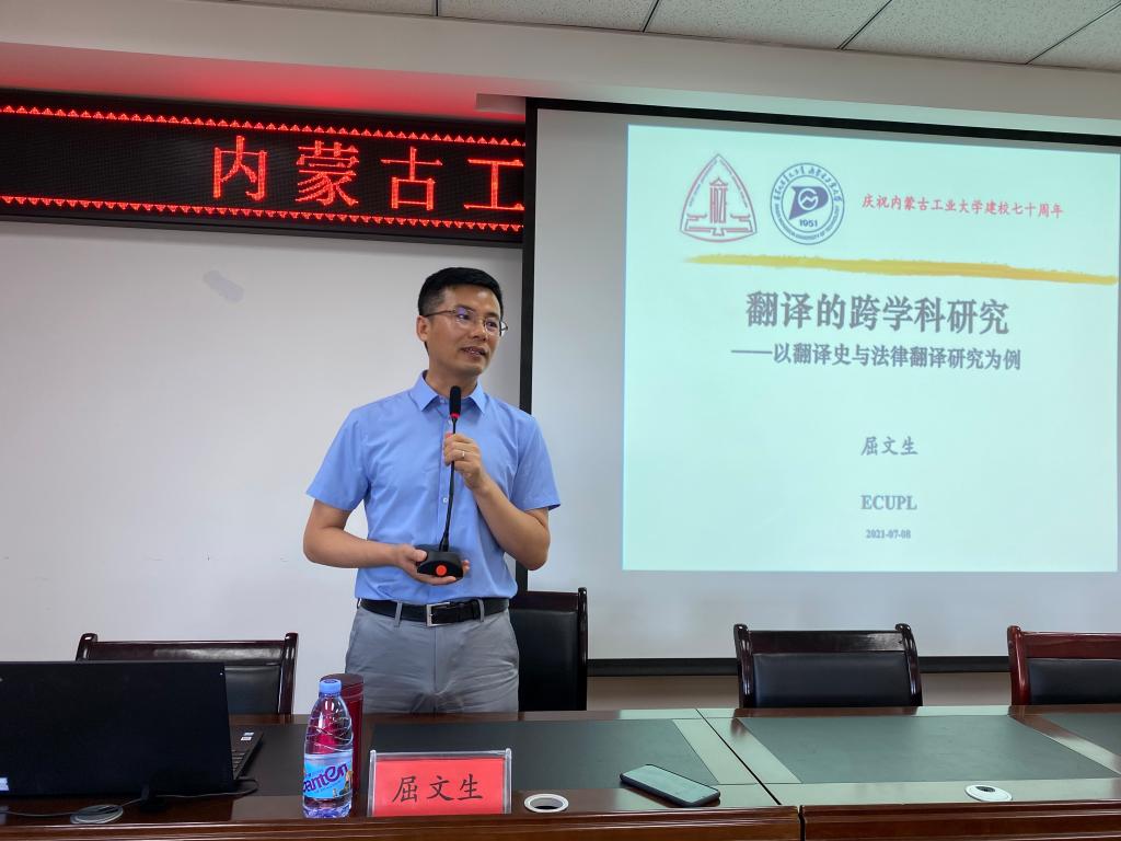 7月8日上午,我校《植霖讲堂》第62讲在金川校区电力大楼0400会议室举办。yL23411永利集团邀请杰出校友、华东政法大学科研处处长、博士生导师、教育部首届“长江学者奖励计划”青年学者屈文生教授做客“明德讲坛”,做题为“翻译的跨学科研究---以翻译史与法律翻译研究为例”的学术讲座。
