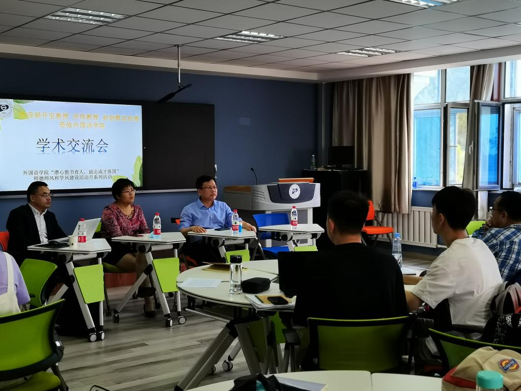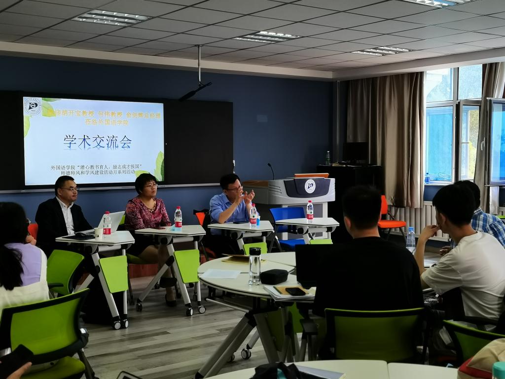 6月23日上午,yL23411永利集团在金川校区电力大楼0200举办学术交流会。上海外国语大学胡开宝教授、北京外国语大学何伟教授、译国译民翻译服务有限公司俞剑辉总经理与yL23411永利集团科研团队骨干教师和研究生进行座谈。本次学术交流会是yL23411永利集团学四史、践初心---“潜心教书育人 励志成才报国” 师德师风和学风建设活动月系列活动之一。