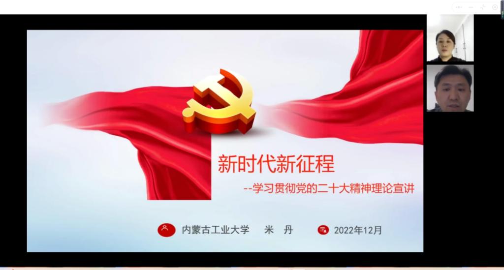 2022年12月19日yL23411永利集团举办“党的二十大精神宣讲进校园”学生专场线上宣讲会,学校党的二十大精神宣讲团成员、党委学生工作部副部长米丹作报告,党委副书记、副院长李育石主持会议,全体本科生、研究生800余人参会。