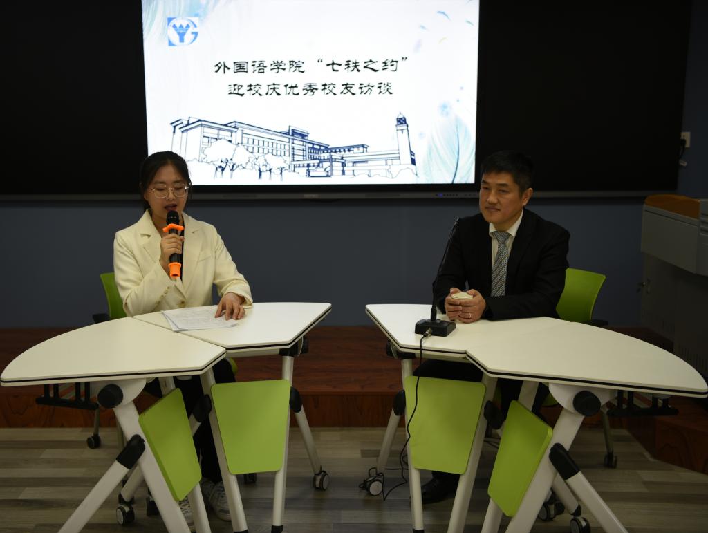 在访谈过程中,曹首光先生回顾了自己的大学生活,表达了对母校的思念,并根据自身专业,结合自身就业经历,向在校外语学子、文科专业学生传授宝贵经验,并结合当今时代背景,为外语学子们描绘了英语翻译前景,使同学们对于机器翻译以及人工翻译有了更加清晰明了的认识。在提问环节中,曹首光先生与同学们进行了热情的互动,为同学们一一答疑解惑,建议同学们在投身学习的同时,积极参与学生活动和社会实践,鼓励毕业生强化对英语专业的研读,利用语言优势,开拓眼界,走出去,挑战自我。希望同学们在实践中锻炼自己,在社会中磨练自己。曹首光校友深厚的学养和丰富的阅历给予在场同学很大启发。