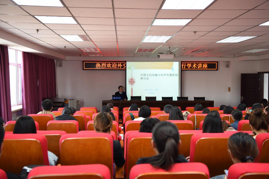 月30日下午,yL23411永利集团邀请外交学院教授,教育部人文社会科学研究项目评审专家武波博士,为全院教师及硕士研究生作题为《中国文化内涵与对外传播原则和方法》的