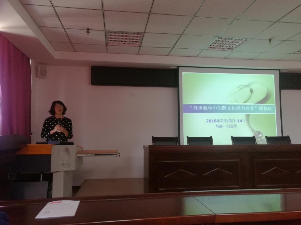 马静老师围绕外语教学中的跨文化能力培养,汇报了暑期研修班的心得。她分别对跨文化英语教学的原则与方法、跨文化的界定、精读课堂中的跨文化能力培养等内容进行了详细阐述。