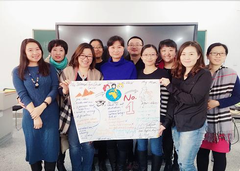 老师与北科大教学团队为工作坊确定了“以混合式教学模式开展混合式教学研讨与实践”的基调,从理念到实践,环环相扣,充实有序。参培教师聆听了大学英语SPOC翻转课堂教学系列讲座,与同事们共同研讨并实践混合教学模式下的教学设计。老师们以小组为单位,分工协作,在有限的时间内高效地完成了北科大教学团队布置任务。