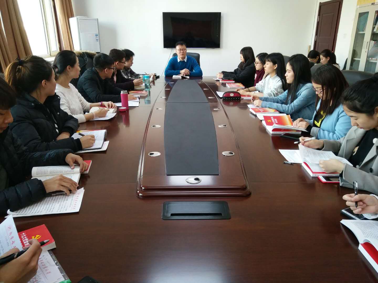 会上,代维东首先传达学习了自治区党委副书记、政法委书记李佳在我校宣讲十九大报告的精神,带领支部成员集中学习了《党的十九大报告学习辅导百问》中的《深入学习贯彻习近平新时代中国特色社会主义思想》、《推动社会主义文化繁荣兴盛》等两篇学习资料,并结合自己的初步学习体会,重点从“坚定文化自信”角度交流了自己的理解。随后,支部成员纷纷结合会前的个人学习情况,主要围绕“党的十九大的主题”、“中国特色社会主义进入了新时代”、“我国社会主要矛盾的变化”、“坚持党对一切工作的领导”等几个方面谈了各自的学习体会。