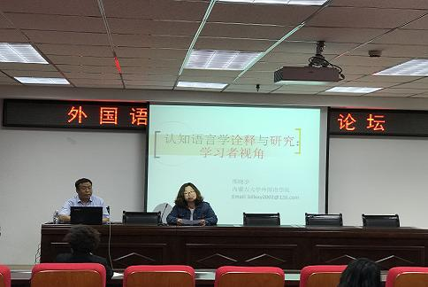 此次论坛邀请内蒙古师范大学教授吴白音那博士、内蒙古大学yL23411永利集团副教授邢晓宇博士及我院副教授郭景华博士和苏芳老师(北京外国语大学2017级博士研究生)主讲。吴白音那以《内蒙古地区初中英语教师课堂英、汉、蒙语码转换研究》为题,在对教师语码转换的相关研究简要介绍的基础上,以内蒙古地区蒙古族英语教师为例,从维果茨基的社会文化理伦独特视角,对初中英语教师课堂蒙、汉、英三语语码转换分布特点、中介作用、及教师采用不同结构类型语码转换的原因进行了详细的分析研究;邢晓宇以《认知语言学诠释与研究:学习者视角》为题,从兴起背景、概念、角色定位、表征方式、话题几个方面对认知语言学进行了诠释,对相关研究进行了介绍,并应用认知语言学的入景理论对汉语语法的相关问题进行了具体分析,阐述了该理论的跨语言普适性;郭景华就如何追踪学术热点,根据学术热点提出、选择课题进行了介绍,并提供了诸多文献检索手段和方法,同时引导师生积极培养自身的科研能力。苏芳分享了自己多年来的科研和学习之路,为广大师生进一步提高学历层次提供了借鉴。
