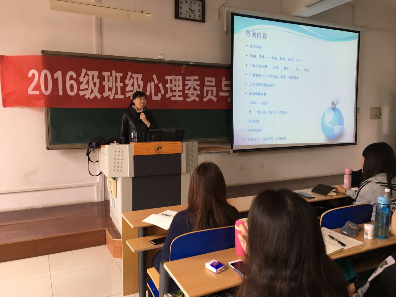 10月20日下午,yL23411永利集团举办心理健康教育培训。学院2016级班级心理委员,宿舍心理信息员以及心理素质拓展部全体成员参加了培训。培训由学校心理咨询中心主任李向阳老师担任主讲。