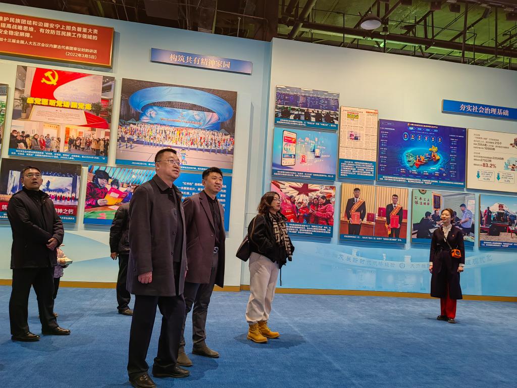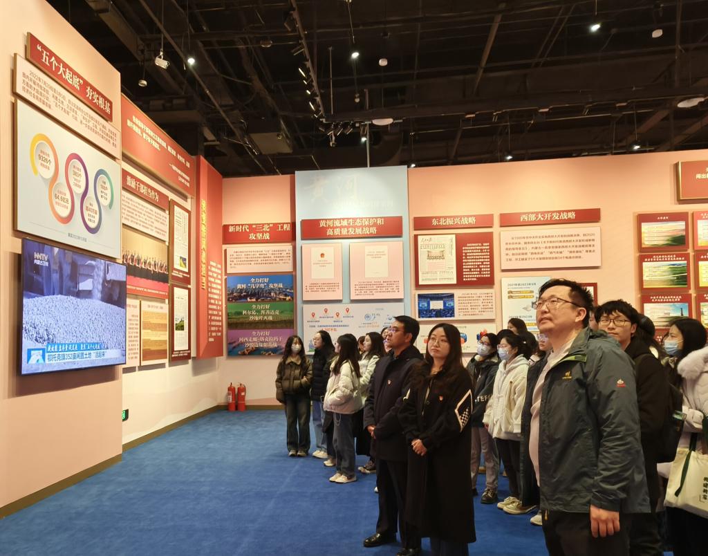 观展师生认真听取讲解,不时驻足观看、交流心得,表示将进一步增强贯彻落实习近平总书记对内蒙古的重要指示精神的思想自觉、行动自觉,凝聚最广人心、汇聚最大力量,在扎实推进学科建设、人才培养、完成总书记交给内蒙古的“五大任务”和全方位建设“模范自治区”的历史进程中贡献智慧和力量。