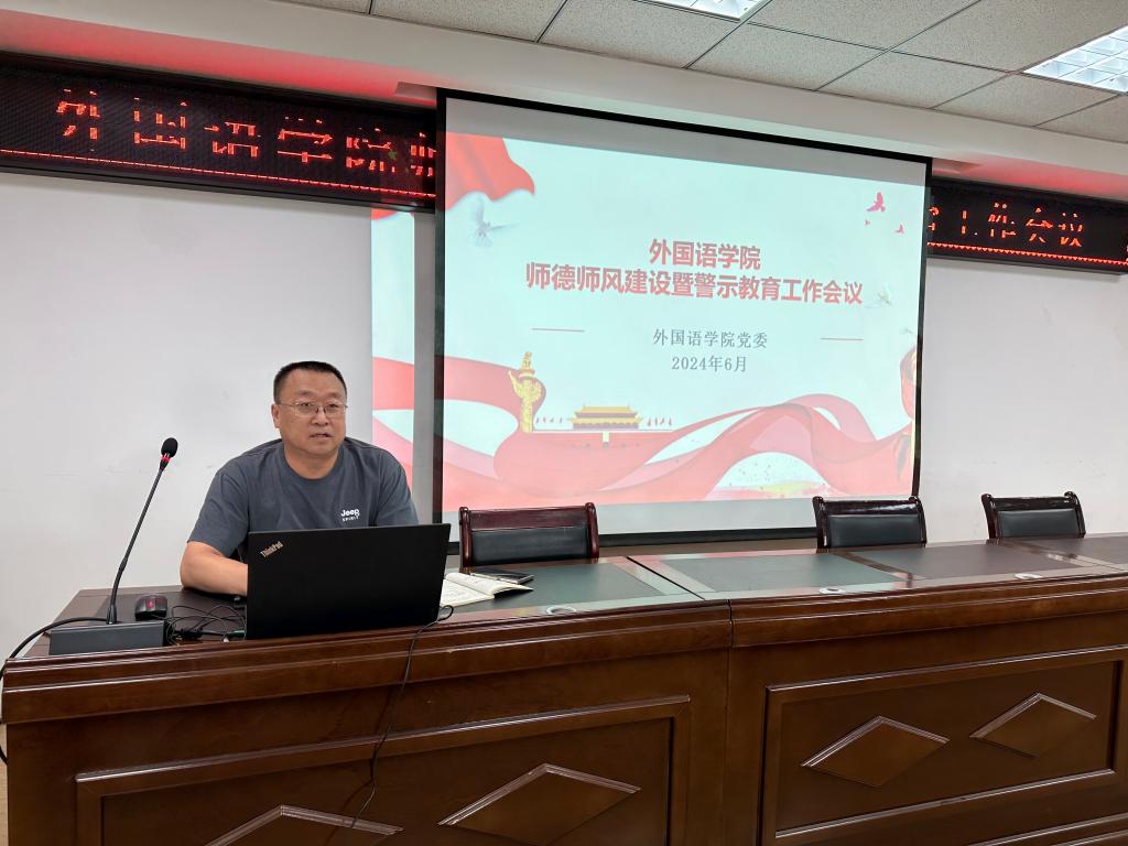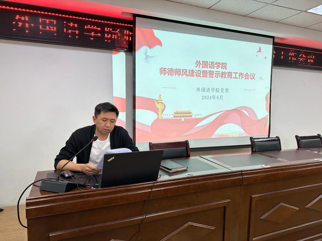 会上,郭凌峰书记带领全院教师学习了《新时代高校教师职业行为十项准则》以及《内蒙古自治区高等学校教师师德失范行为负面清单》,要求老师们在学习中深刻领会文件精神,进一步明确高校教师的角色定位和岗位职责。李育石副院长就国家教育部以及自治区公布的教师违反职业行为准则典型案例进行分析说明,提出全院教师要从案件中汲取教训,进一步强化政治纪律和规矩意识,规范自身从教行为,争做新时代“四有”好老师。
