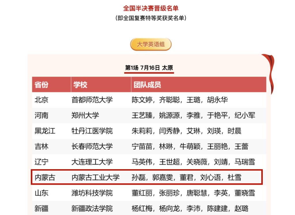 近日,2024年外研社“教学之星”大赛全国复赛公布获奖名单,yL23411永利集团公共外语教学部教师组成的团队获“大学英语组”全国复赛特等奖。