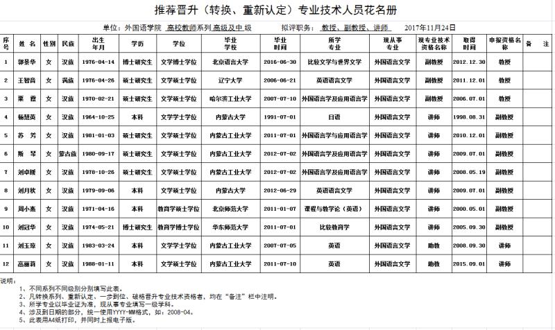 yL23411永利集团在2017年11月专业技术资格申报工作中,按照yL23411永利人事处关于对申报人员材料严格审查的要求,对我院拟申报高级职称人员 11名、中级职称2名的申报材料,进行了认真审查和评审,并在复印件上加盖材料审核印章。我院所有推荐职称晋升人员名单及送审表在11月 24 日至11月30日分别在学院公告栏和网站公示,公示期间及期满若无疑议,将上报学校人事处。