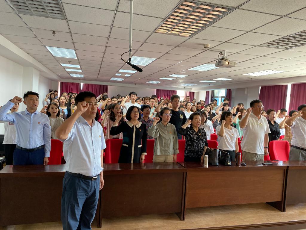 集中宣誓活动由学院党委副书记、副院长李育石主持,学院党委书记霍天瑞领誓。活动中,全体党员师生奏唱《中华人民共和国国歌》、重温入党誓词、合唱《没有共产党就没有新中国》歌曲。通过举行党员集体宣誓活动,进一步激励广大党员坚定信念、对党忠诚、勇于担当、无私奉献的精神。