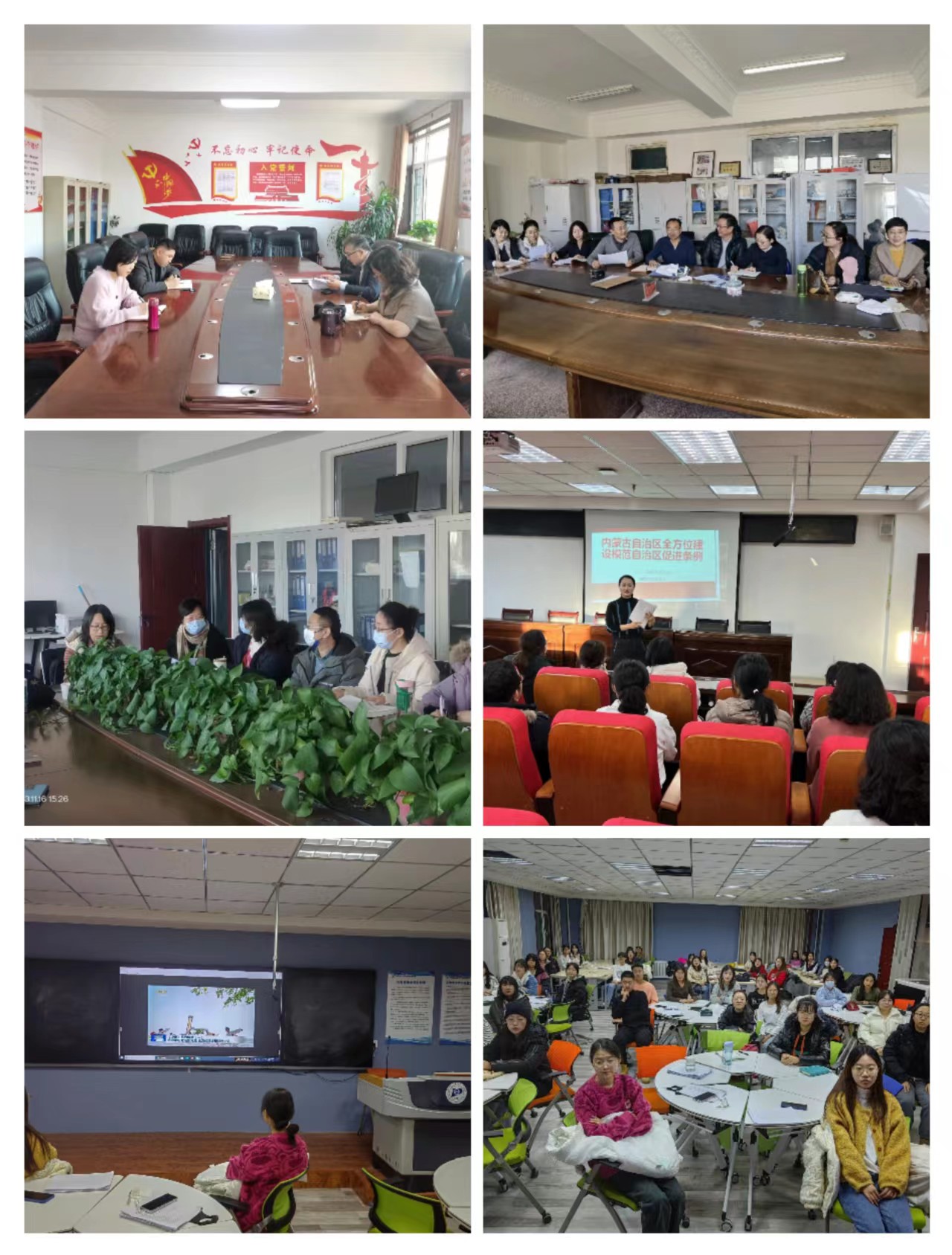 会议指出,国务院印发《意见》在内蒙古发展史上具有重要意义,抓好《意见》的贯彻落实,结合做好六部促进条例的学习宣传,是当前和今后一个时期的重要内容。要切实提高政治站位,深切体悟以习近平同志为核心的党中央对内蒙古的关怀厚爱和期望重托,更加由衷地感党恩、听党话,以办好两件大事的实际行动坚定拥护“两个确立”、坚决做到“两个维护”。要突出专业特色,推进教学科研团队建设,办好人民满意的教育,提升教育对高质量发展的支撑力、贡献力。要大力弘扬蒙古马精神,在服务学校和自治区发展战略需求中作出积极贡献,推动自治区各项事业取得新成效、实现新突破。