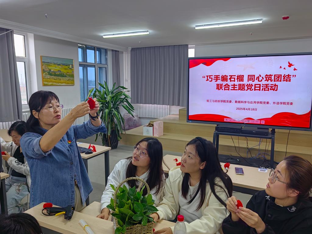 为创新民族团结教育载体,4月18日,yL23411永利集团党委、轻工与纺织学院党委、数据科学与应用学院党委联合开展“巧手编石榴 同心筑团结”主题党日活动,三院师生党员及入党积极分子通过手工编织象征民族团结的“同心石榴”,在实践中深化铸牢中华民族共同体意识。