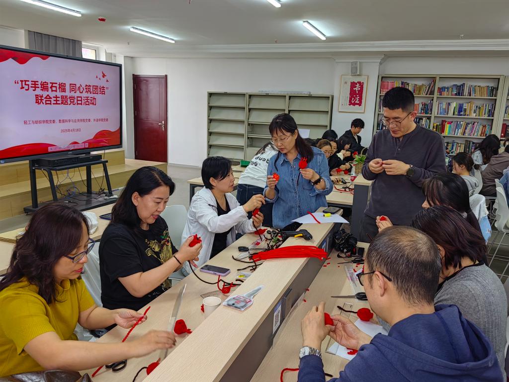 活动现场,师生用红色扭扭棒精心制作石榴造型,在指尖艺术创作中感悟“各民族像石榴籽一样紧紧抱在一起”的深刻内涵。不同学科背景的师生在协作中增进交流,既提升了基层党组织的凝聚力,也搭建了跨学科融合发展的新平台。