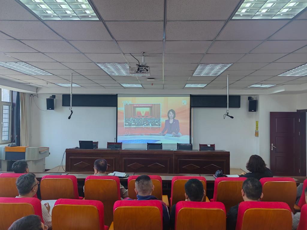 会上全体教职工共同观看专题片《以更高标准更实举措推进全面从严治党》。