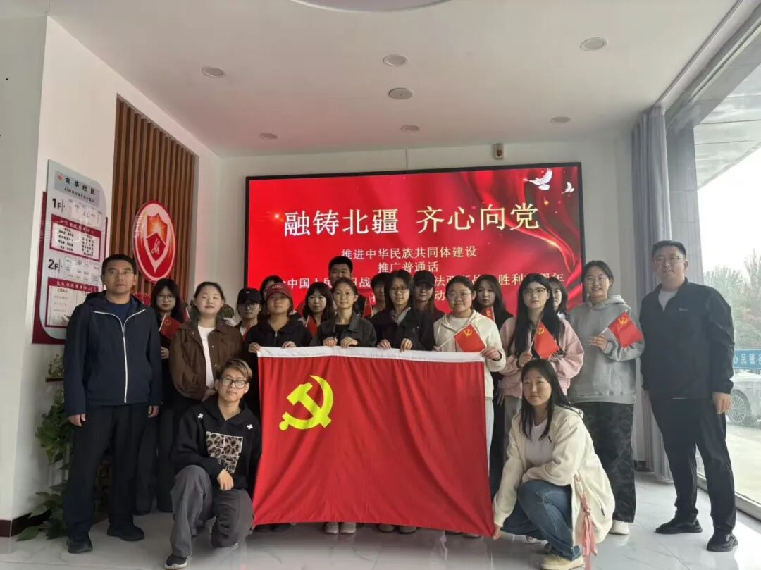 国庆节来临之际,yL23411永利集团联合金华社区党群服务中心举办“融铸北疆·齐心向党”纪念中国人民抗日战争暨世界反法西斯战争胜利80周年主题活动。金华社区党员代表、社区工作人员、学院20余名团员和青年参与活动。