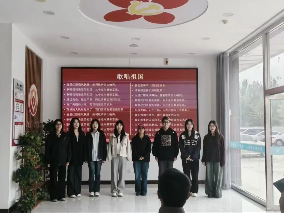 活动接近尾声时,全体人员在主持人的带领下起立,高声齐唱《歌唱祖国》。熟悉的旋律响彻会场,“五星红旗迎风飘扬,胜利歌声多么响亮”的歌声激荡人心,青年学子与社区居民手挥国旗,用嘹亮的歌声表达对祖国的热爱与祝福。这一刻,历史的厚重与当下的豪情交织,展现出新时代青年传承红色基因、担当时代使命的坚定信念。